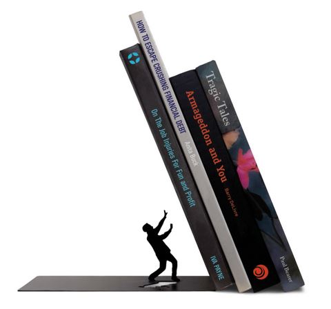 Ay! Se cae! Se cae! Pero no te preocupes! Que The End es un soporte para libros que le da un poco de dramatismo al orden, pero cumple perfecta su función! Está hecho de acero resistente así que no te asustes si parece que no va a aguantar el peso de todos tus libros.